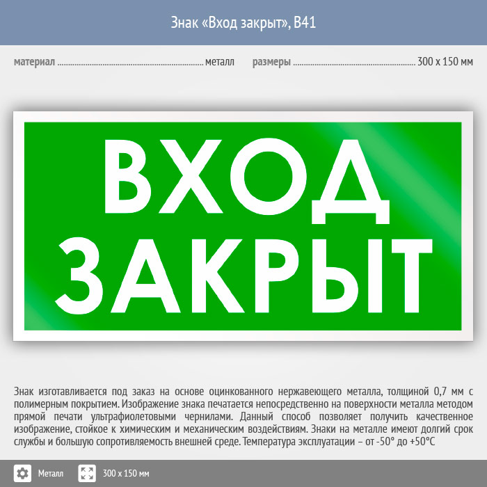 Знак «Вход закрыт», B41 (металл, 300х150 мм) в Магнитогорске купить
