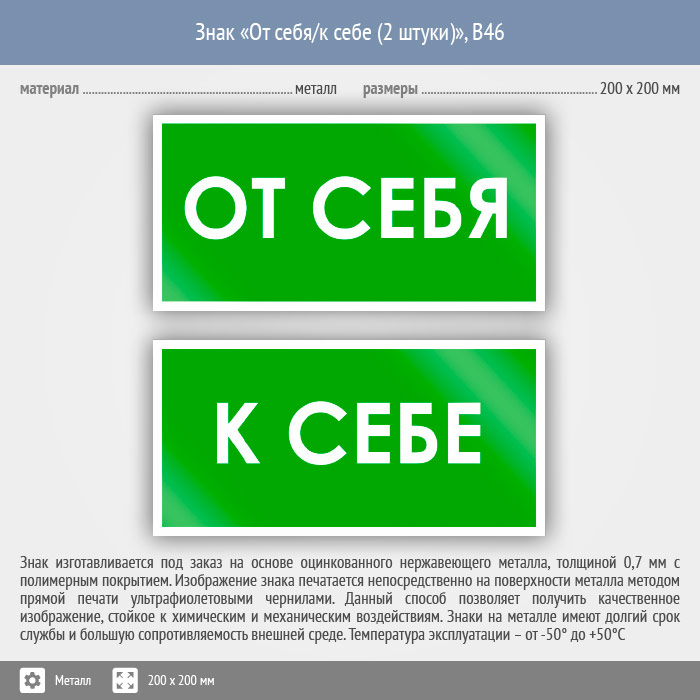 Знак «От себя/к себе», B46 (2 штуки, металл, 200х100 мм) в Магнитогорске купить