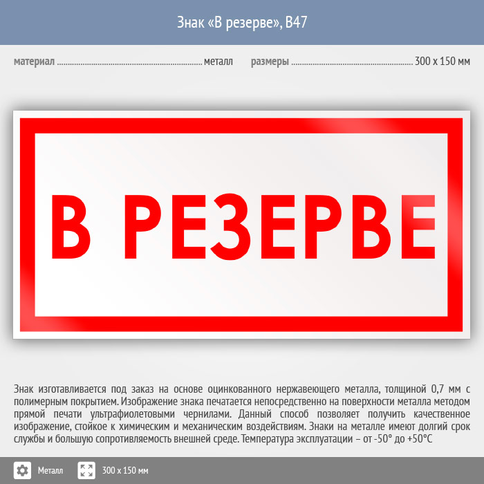 Знак «В резерве», B47 (металл, 300х150 мм) в Магнитогорске купить