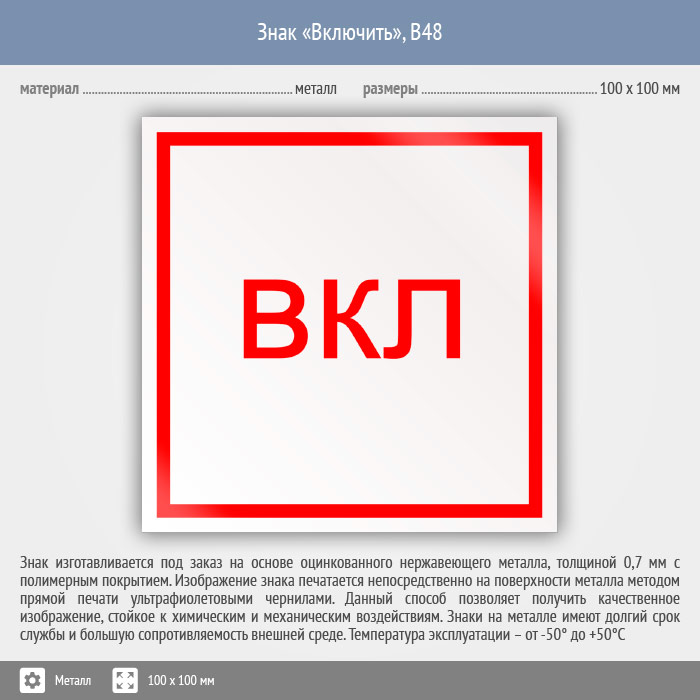Знак «Включить», B48 (металл, 100х100 мм) в Магнитогорске купить