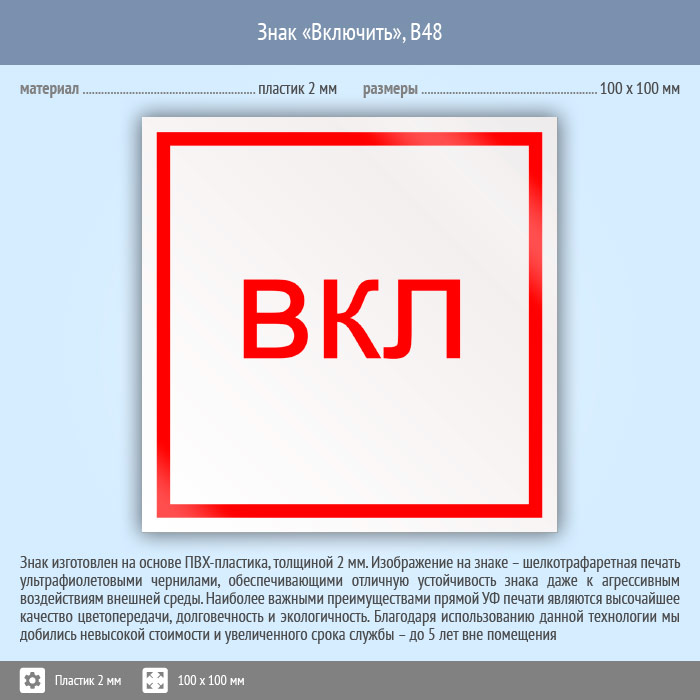 Знак «Включить», B48 (пластик, 100х100 мм) в Магнитогорске купить