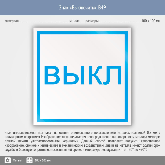 Знак «Выключить», B49 (металл, 100х100 мм) в Магнитогорске купить
