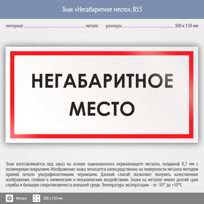 Знак «Негабаритное место», B55 (металл, 300х150 мм) в Магнитогорске купить