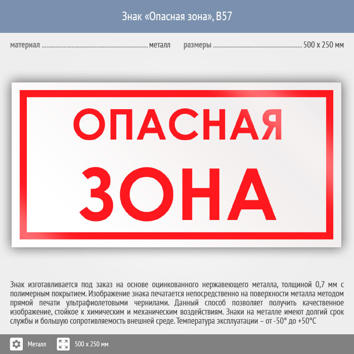 Знак «Опасная зона», B57 (металл, 500х250 мм) в Магнитогорске купить