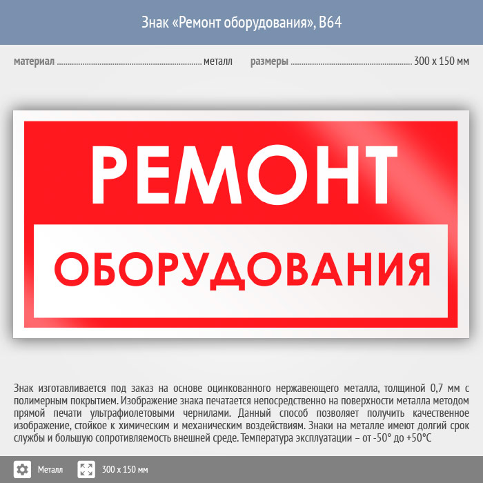 Знак «Ремонт оборудования», B64 (металл, 300х150 мм) в Магнитогорске купить