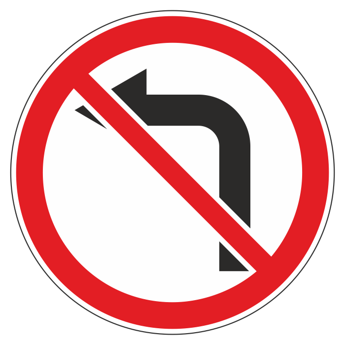 Дорожный знак 3.18.2 «Поворот налево запрещен» (металл 0,8 мм, III типоразмер: диаметр 900 мм, С/О пленка: тип В алмазная) в Магнитогорске купить