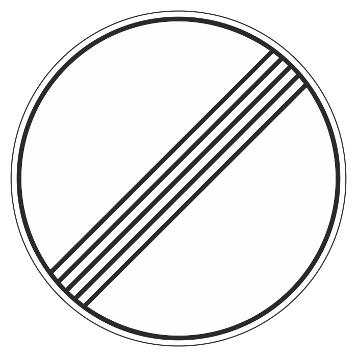 Дорожный знак 3.31 «Конец зоны всех ограничений» (металл 0,8 мм, II типоразмер: диаметр 700 мм, С/О пленка: тип А инженерная) в Магнитогорске купить