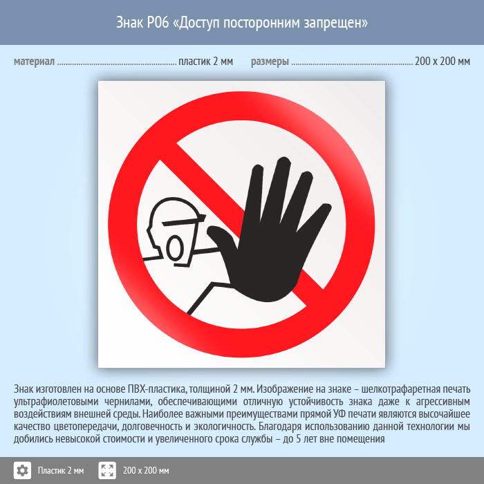 Знак P06 «Доступ посторонним запрещен» (пластик, 200х200 мм) в Магнитогорске купить