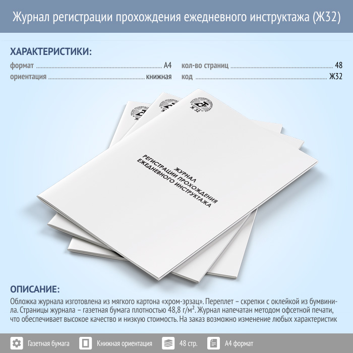 Журнал регистрации прохождения ежедневного инструктажа (Ж32) в Магнитогорске купить