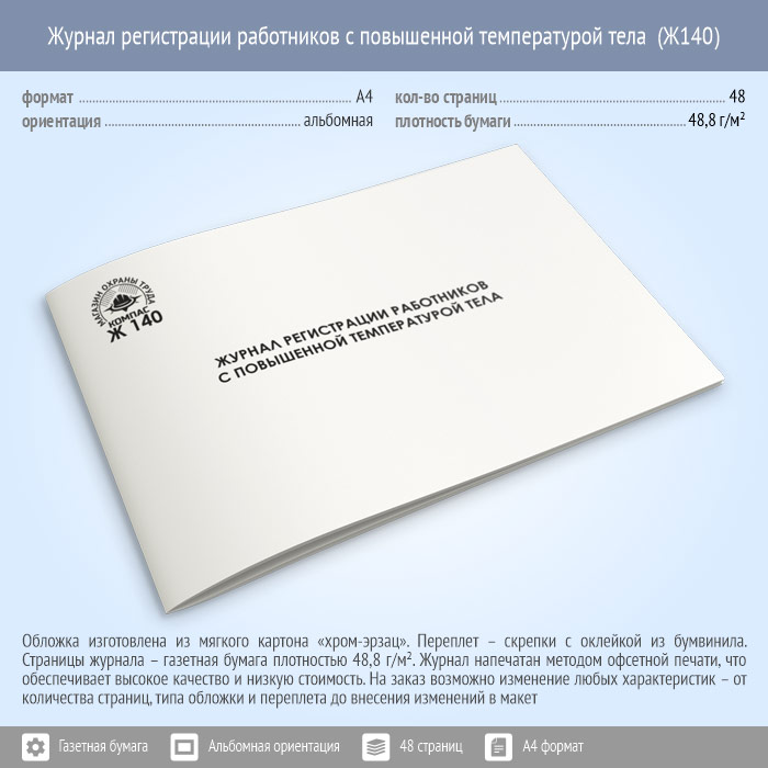 Журнал регистрации работников с повышенной температурой тела (48 стр., Ж140) в Магнитогорске купить