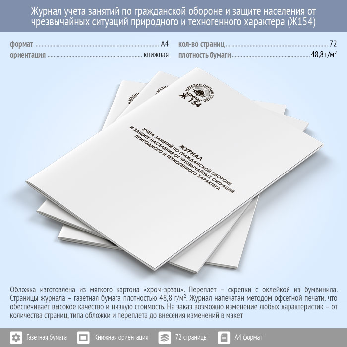 Журнал учета занятий по гражданской обороне и защите населения от чрезвычайных ситуаций природного и техногенного характера (72 стр., Ж154) в Магнитогорске купить