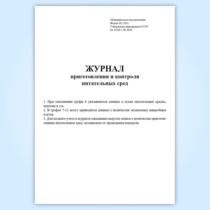 Журнал приготовления и контроля питательных сред (форма 256/у) в Магнитогорске купить