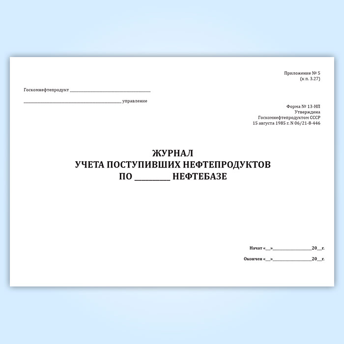 Журнал учета поступивших нефтепродуктов по нефтебазе (форма № 13-НП) в Магнитогорске купить
