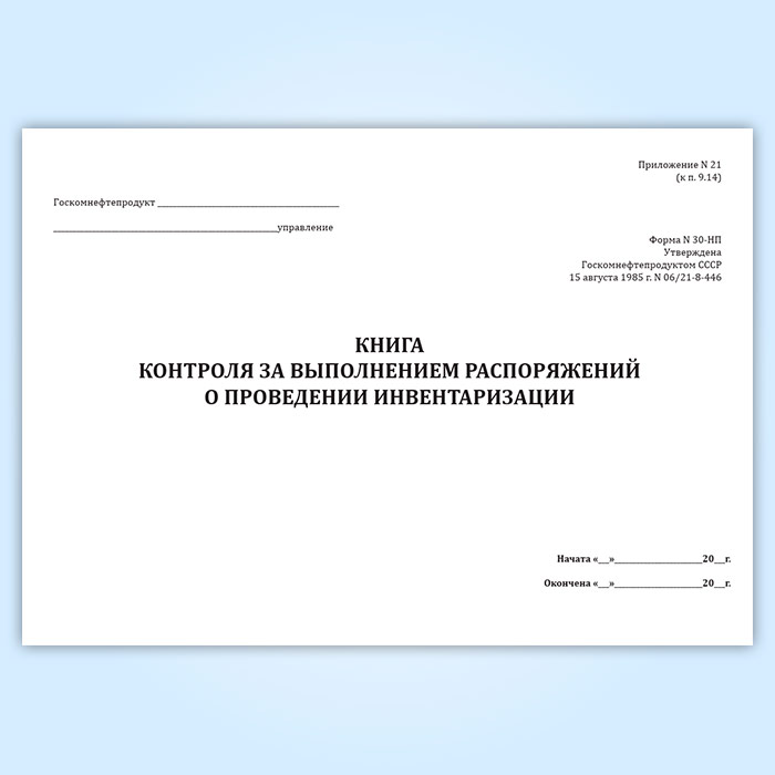 Книга контроля за выполнением распоряжений о проведении инвентаризации (форма № 30-НП) в Магнитогорске купить