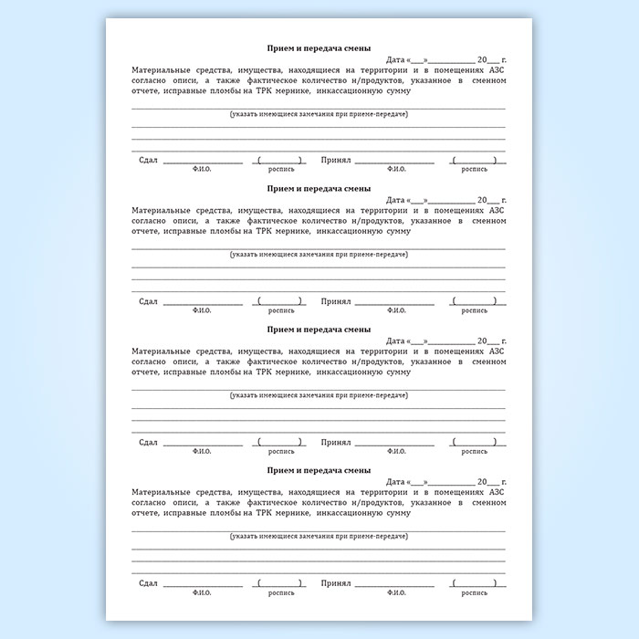 Журнал приема и передачи смен на АЗС в Магнитогорске купить