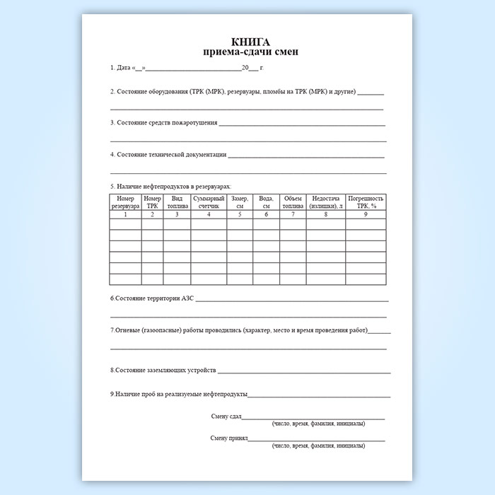 Книга приема-сдачи смен АЗС в Магнитогорске купить