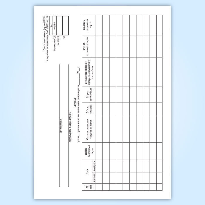Журнал учета, приема и выдачи топливных смарт-карт в Магнитогорске купить