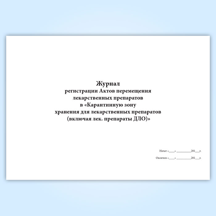 Журнал регистрации Актов перемещения лекарственных препаратов в «Карантинную зону хранения для лекарственных препаратов (включая лек. препараты ДЛО)» в Магнитогорске купить