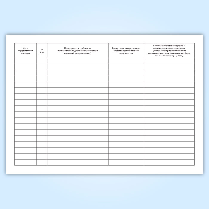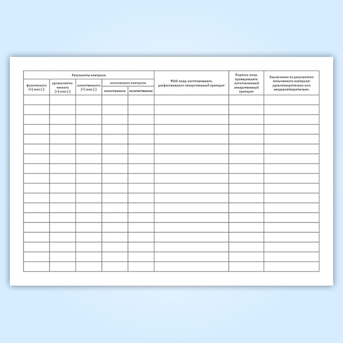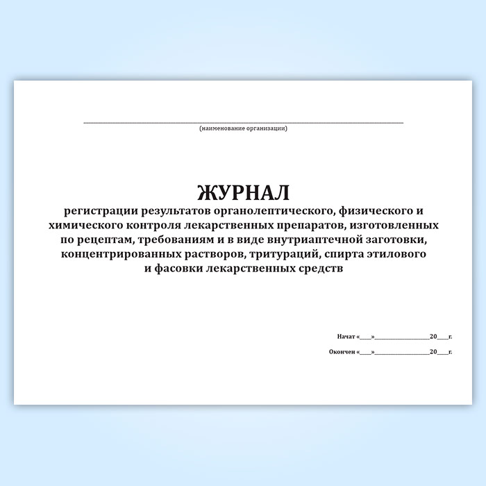 Журнал регистрации результатов органолептического, физического и химического контроля лекарственных препаратов, изготовленных по рецептам, требованиям и в виде внутриаптечной заготовки, концентрированных растворов, тритураций, спирта этилового и фасовки лекарственных средств в Магнитогорске купить