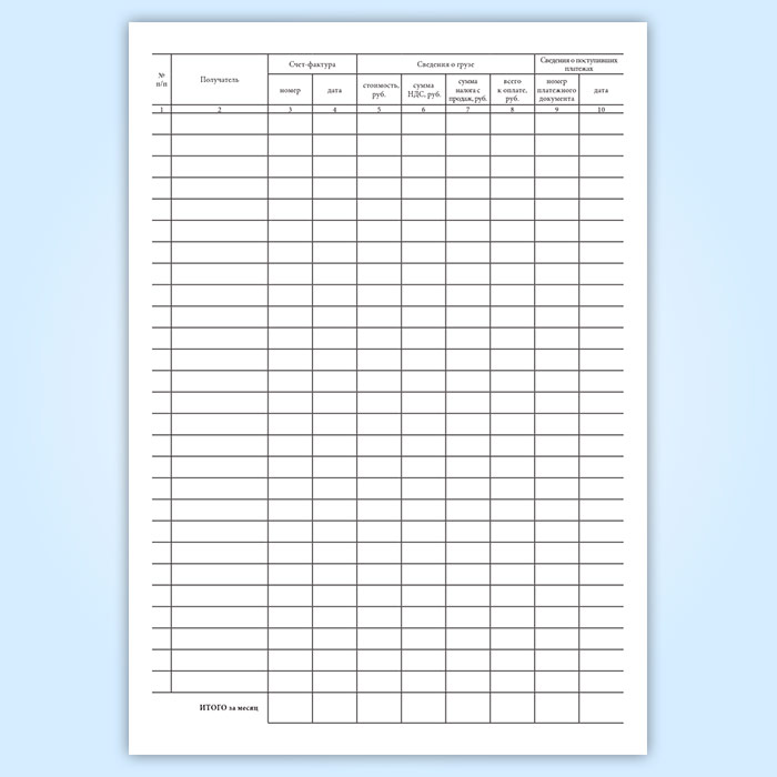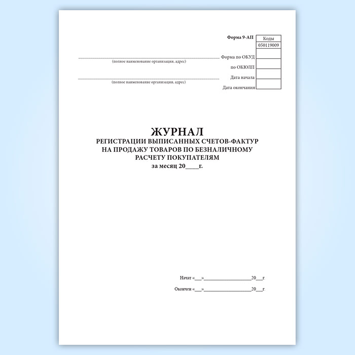 Журнал регистрации выписанных счетов-фактур на продажу товаров по безналичному расчету покупателям (форма 9-АП) в Магнитогорске купить