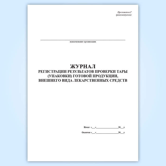 Журнал регистрации результатов проверки тары (упаковки) готовой продукции, внешнего вида лекарственных средств (форма Г) в Магнитогорске купить