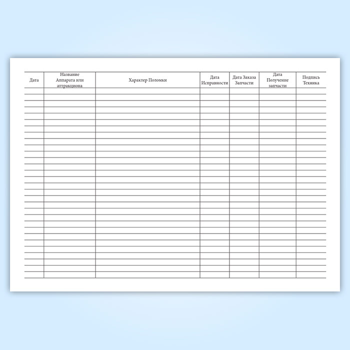 Журнал учета поломки аттракционов и игровых автоматов в Магнитогорске купить