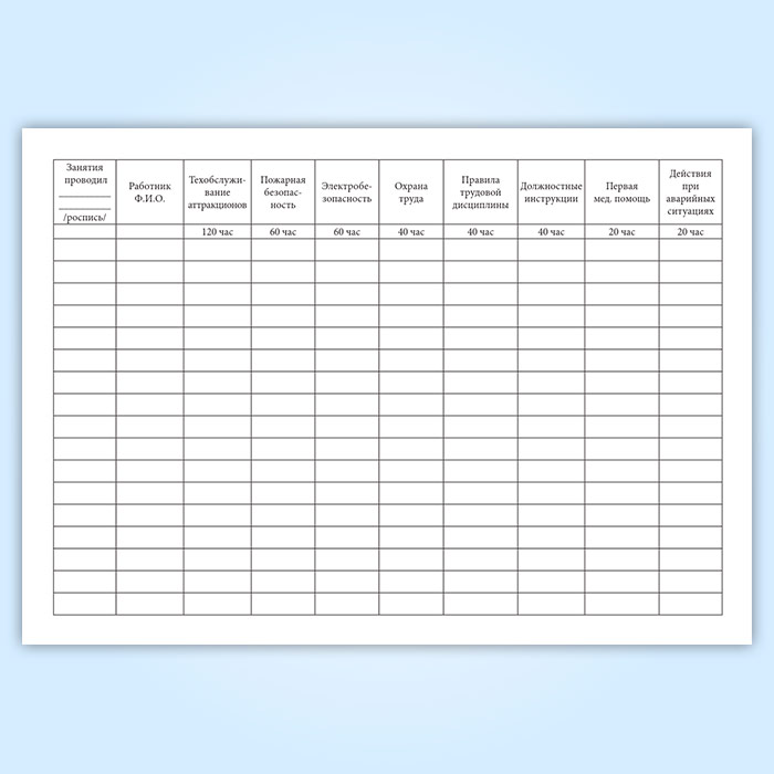 Журнал по обучению персонала передвижного городка аттракционов в Магнитогорске купить