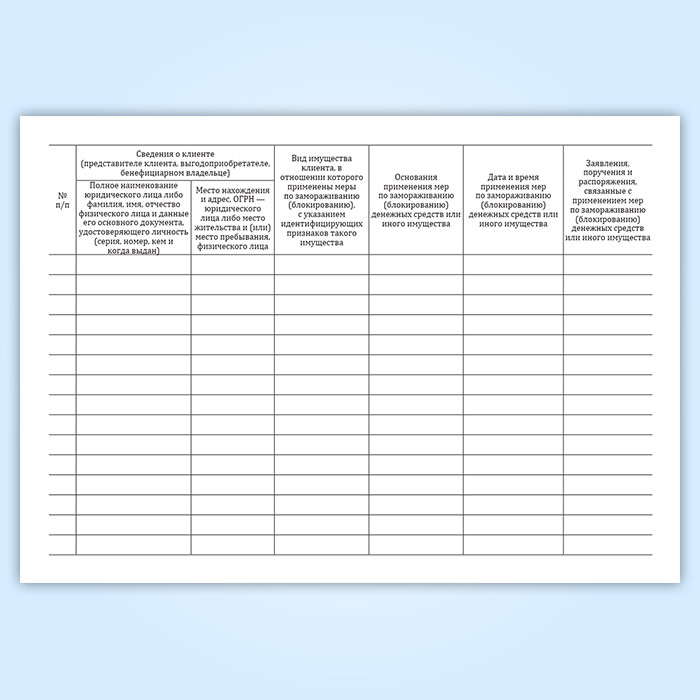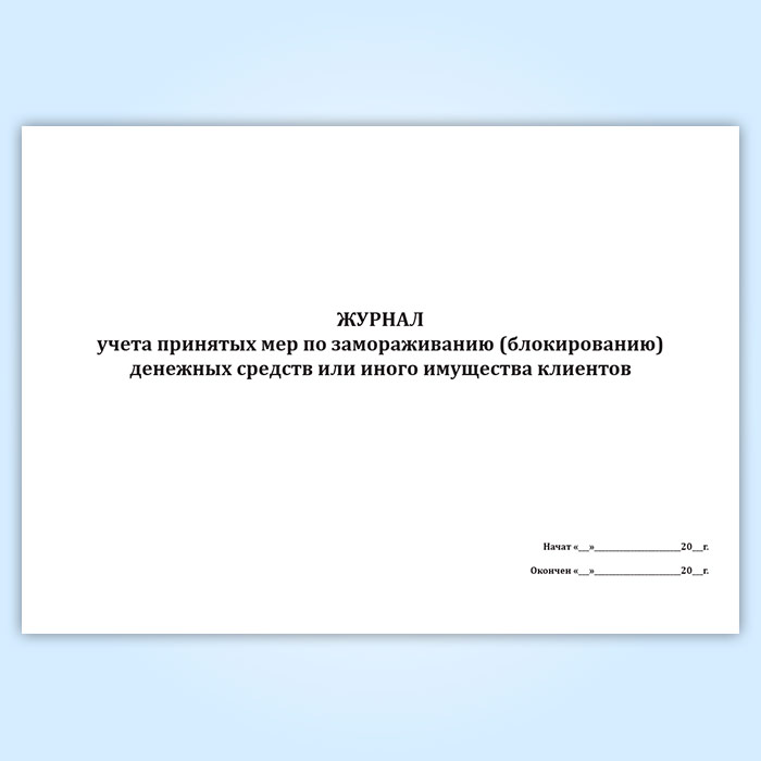 Журнал учета принятых мер по замораживанию (блокированию) денежных средств или иного имущества клиентов в Магнитогорске купить