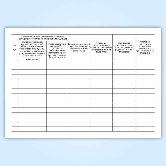 Журнал учета приостановленных операций с денежными средствами и иным имуществом клиента в Магнитогорске купить