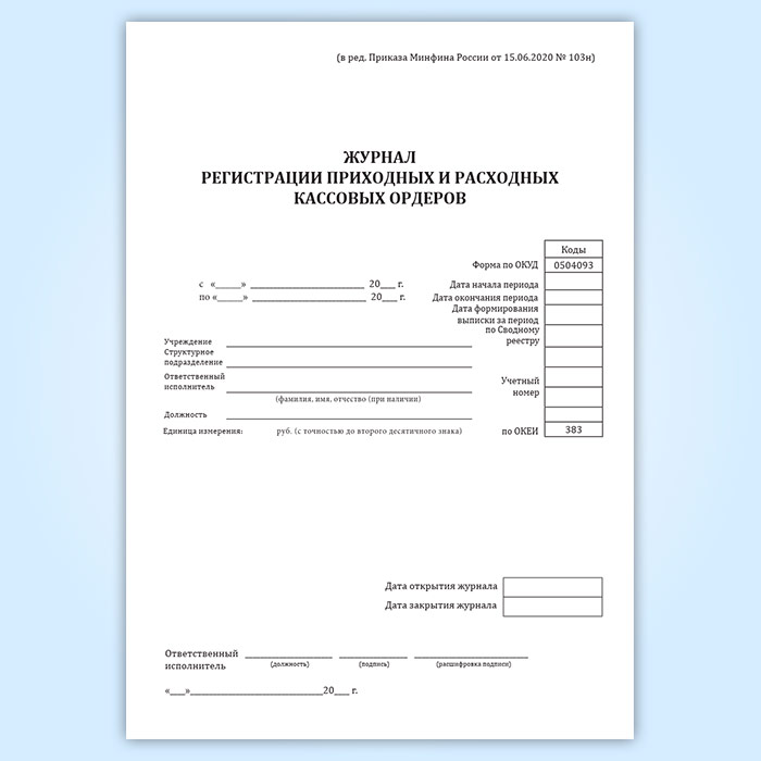 Журнал регистрации приходных и расходных кассовых ордеров (форма по ОКУД 0504093) в Магнитогорске купить