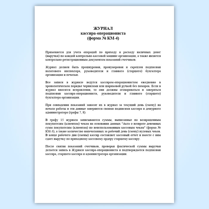 Журнал кассира-операциониста, вертикальный (форма № КМ-4) в Магнитогорске купить