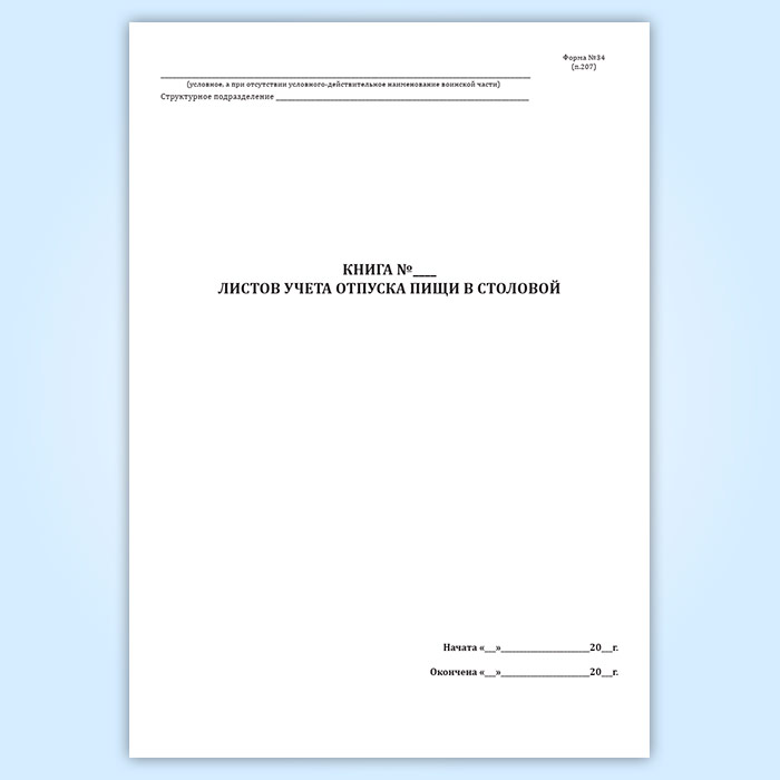 Книга листов учета отпуска пищи в столовой (форма 34) в Магнитогорске купить