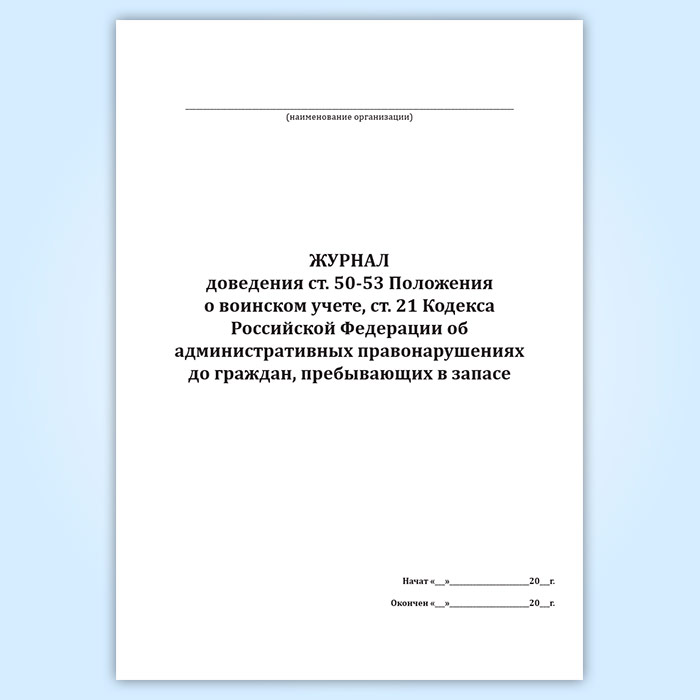 Журнал доведения ст. 50-53 Положения о воинском учете, ст. 21 Кодекса Российской Федерации об административных правонарушениях до граждан, пребывающих в запасе в Магнитогорске купить