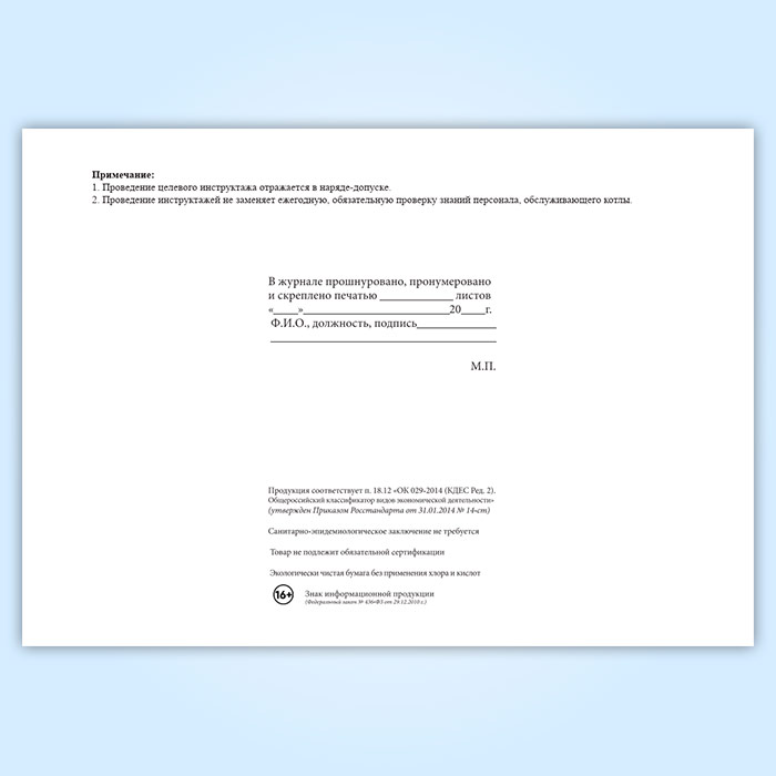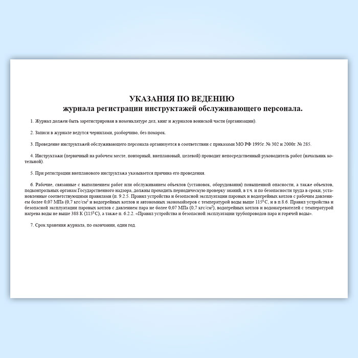 Журнал регистрации инструктажей обслуживающего персонала котельной (для воинских частей, предприятий и организаций) в Магнитогорске купить