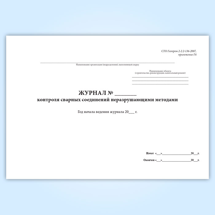 Журнал контроля сварных соединений неразрушающими методами в Магнитогорске купить