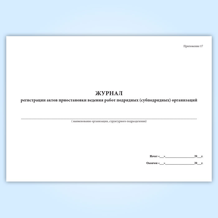 Журнал регистрации актов приостановки ведения работ подрядных (субподрядных) организаций в Магнитогорске купить