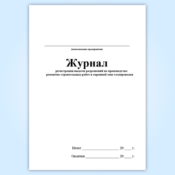 Журнал регистрации выдачи разрешений на производство ремонтно-строительных работ в охранной зоне газопроводов (ГЭГ-14) в Магнитогорске купить