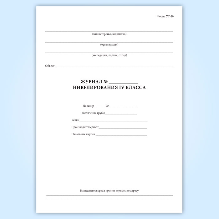 Журнал нивелирования IV класса (форма УТ-10) в Магнитогорске купить