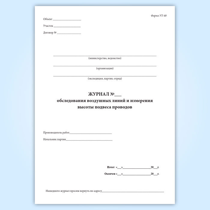 Журнал обследования воздушных линий и высоты подвеса проводов (форма УТ-40) в Магнитогорске купить
