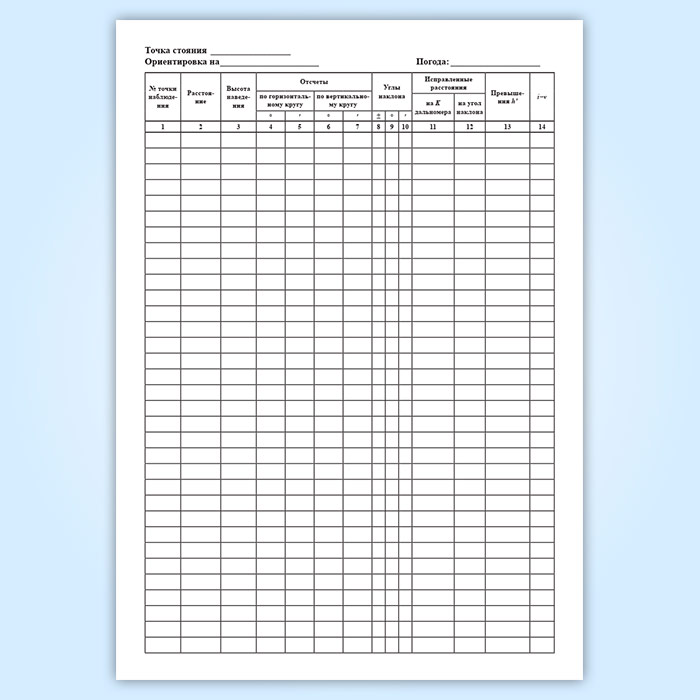 Полевой журнал тахеометрической съемки в Магнитогорске купить