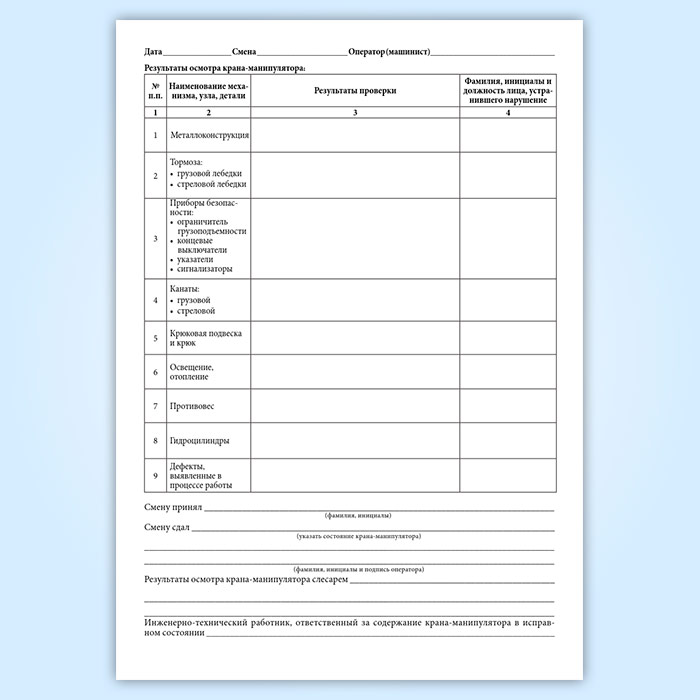 Вахтенный журнал приема-сдачи смен машинистами крана-манипулятора в Магнитогорске купить