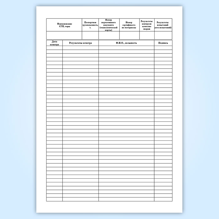 Журнал учета и осмотра съёмных грузозахватных приспособлений и тары (ремонтно-механическая мастерская) в Магнитогорске купить
