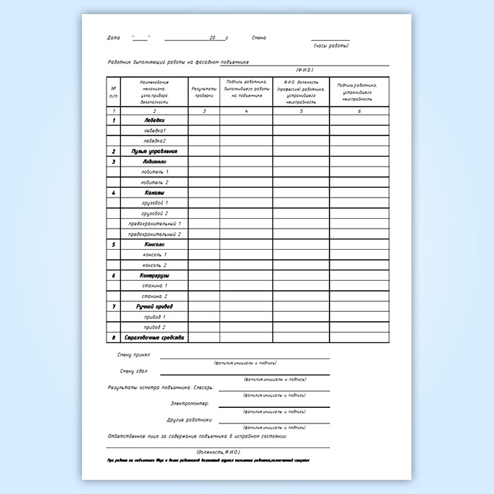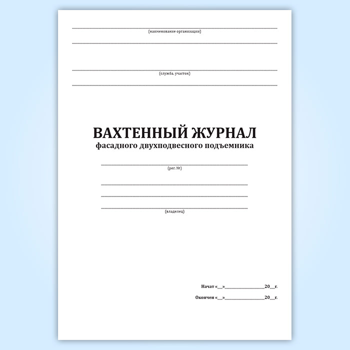 Вахтенный журнал фасадного двухподвесного подъемника в Магнитогорске купить