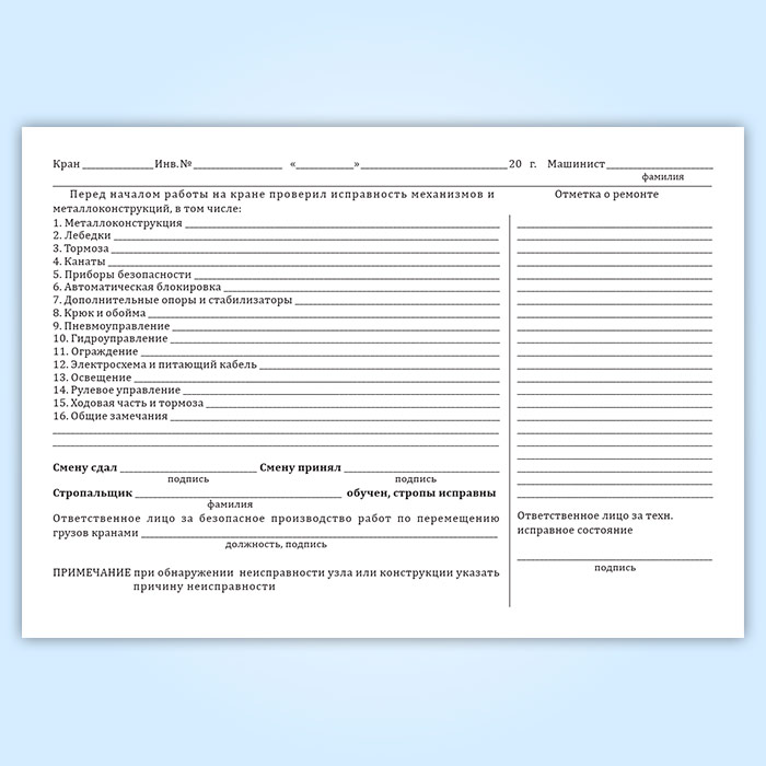 Вахтенный журнал г/п крана в Магнитогорске купить