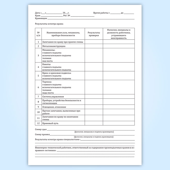 Вахтенный журнал машиниста мостового крана в Магнитогорске купить