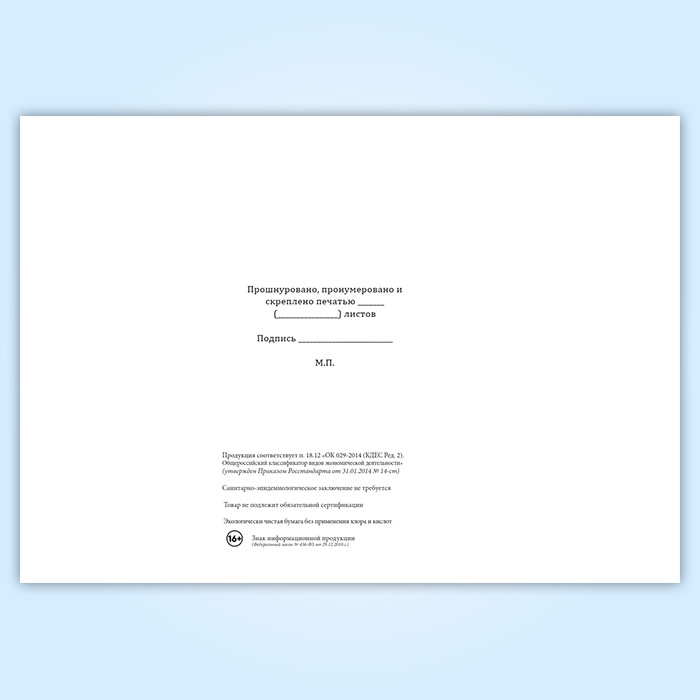 Вы получаете печатную продукцию прошнурованной и c местом для вашей печати в соответствии с действующими нормативными документами: