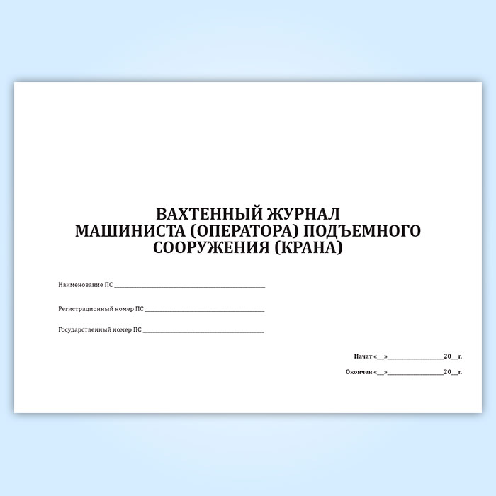 Вахтенный журнал машиниста (оператора) подъемного сооружения (крана) в Магнитогорске купить
