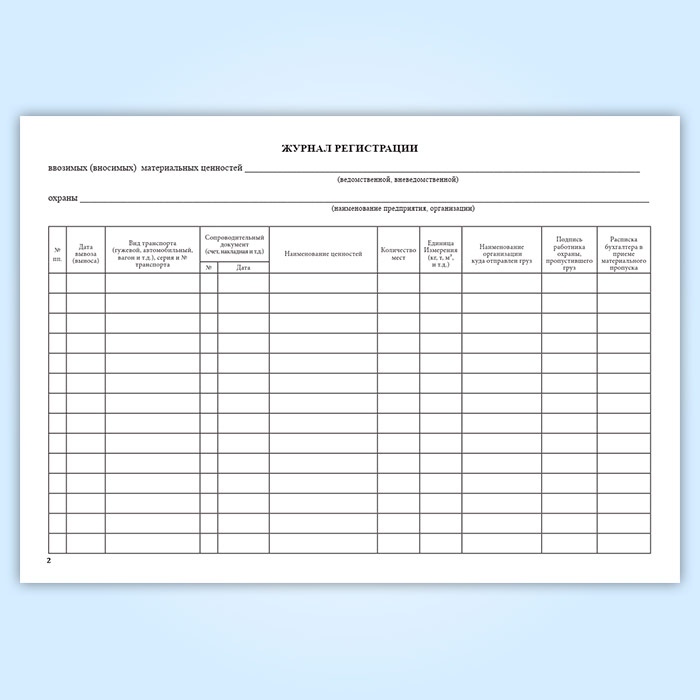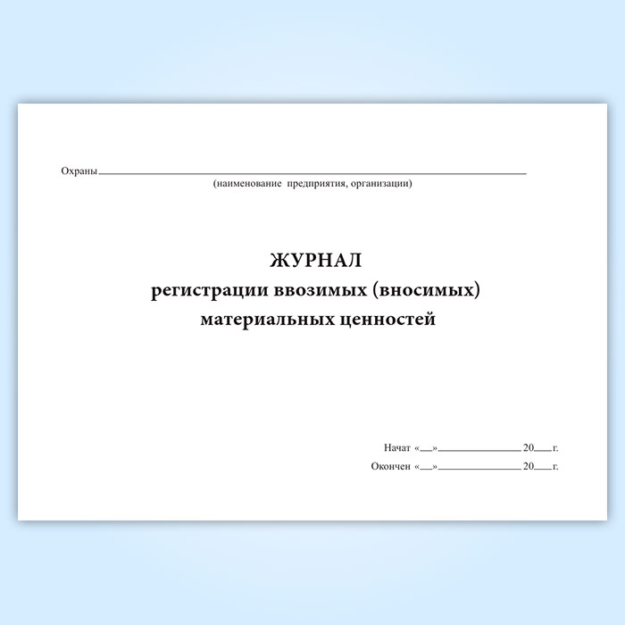 Журнал регистрации ввозимых (вносимых) материальных ценностей в Магнитогорске купить