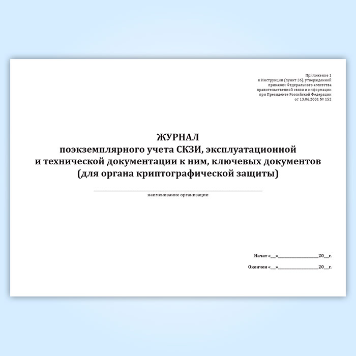 Журнал поэкземплярного учета СКЗИ, эксплуатационной и технической документации к ним, ключевых документов (для органа криптографической защиты) в Магнитогорске купить