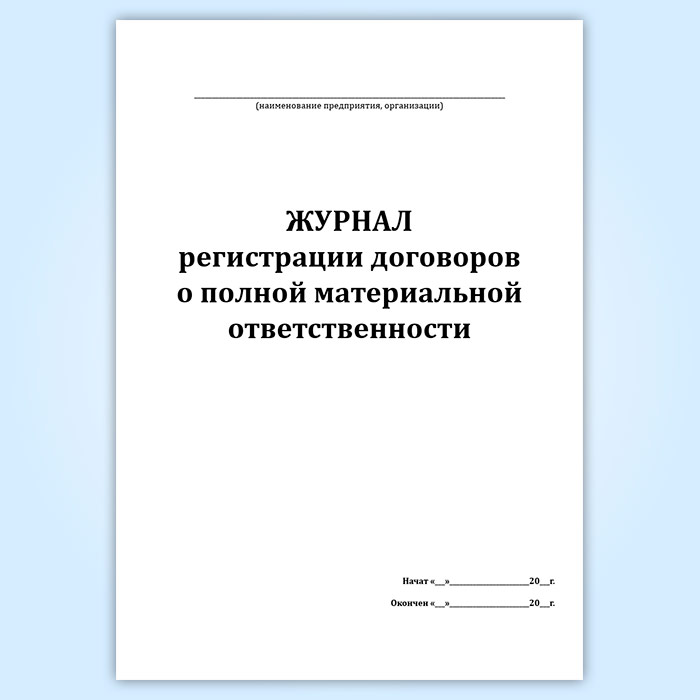 Журнал регистрации договоров о полной материальной ответственности в Магнитогорске купить